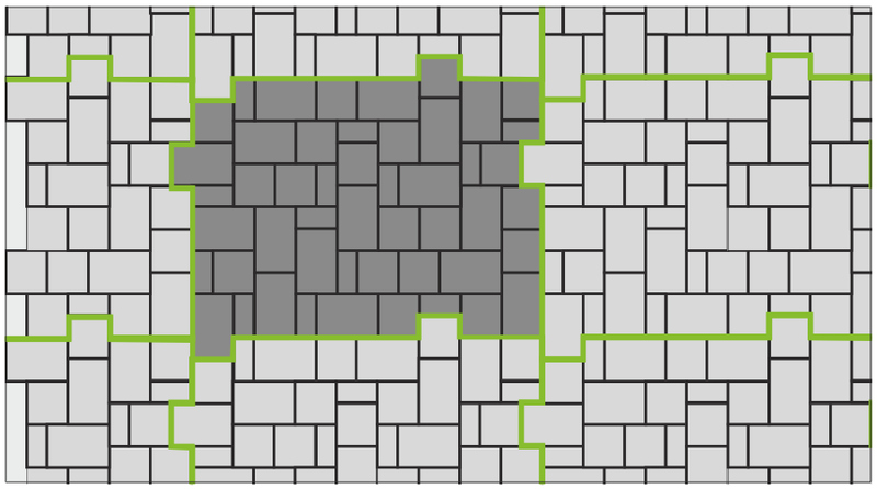 Na odstránenie špár pri pokládke sa v každej vrstve palety vymenia okrajové prvky (zvýraznené prvky).