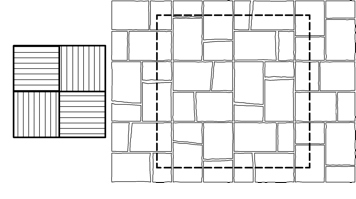 Vzory na ploche je možné vytvárať kombinovaním tvaroviek. Samotný tvar dlažby poskytuje výrazné architektonické členenie plochy.
